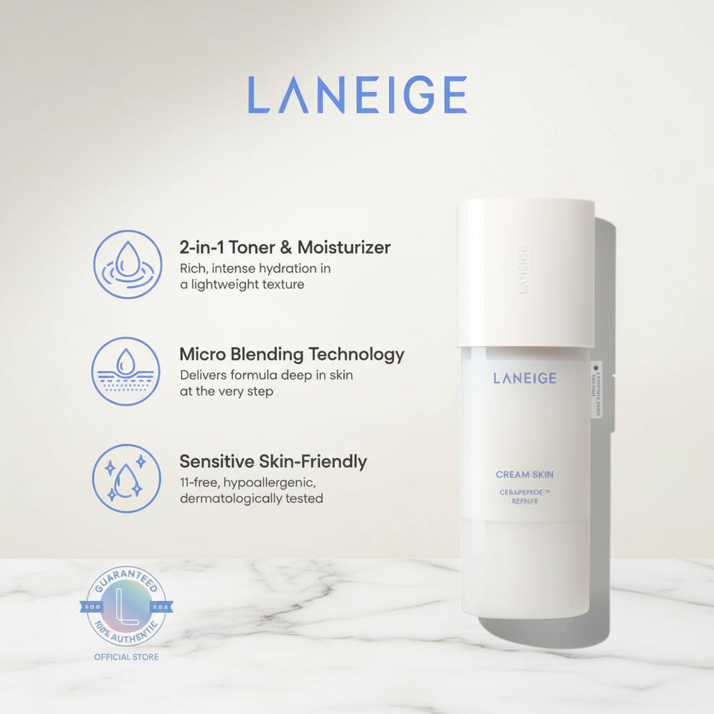 Give your skin an instant hydration boost with Laneige Cream Skin Cerapepide Refiner. This dual-function toner and cream strengthens the skin barrier, soothes irritation, and provides long-lasting moisture. Ideal for daily use, leaving skin soft, smooth, and balanced.